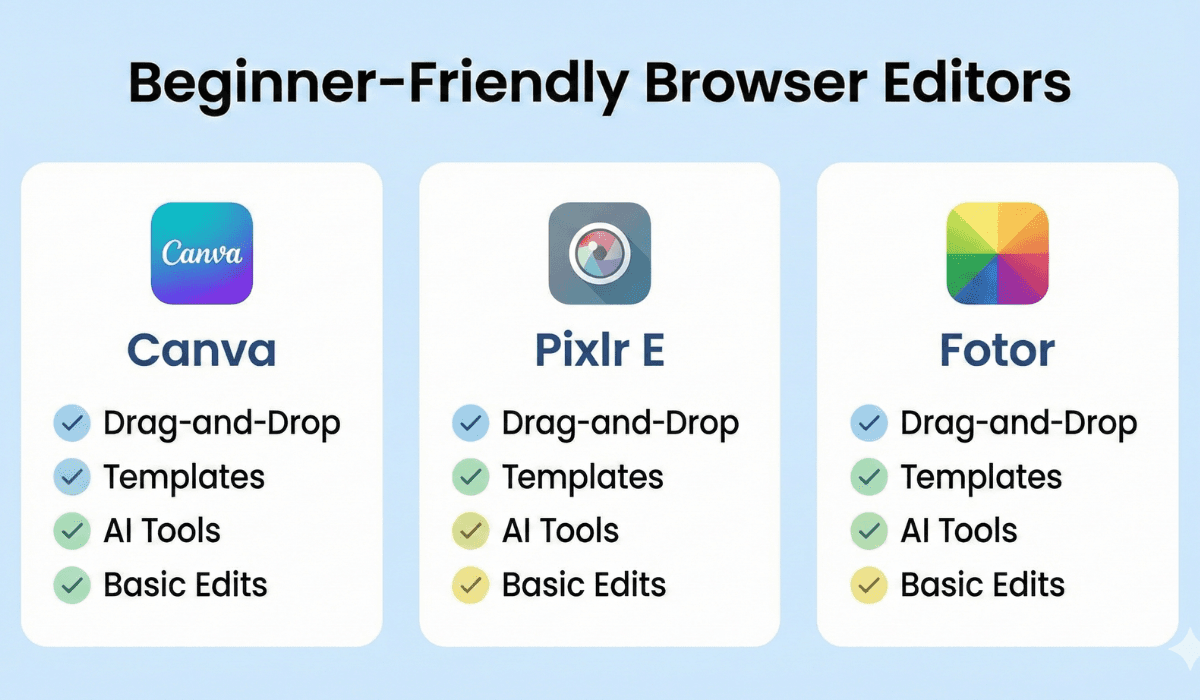 | Pixlr | ✔ | Very Easy | Quick online edits |