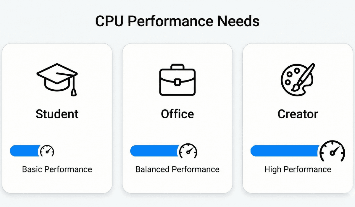 In this guide, you’ll learn exactly which processor is best for students, office professionals, and creators based on real-world usage, not confusing technical numbers.