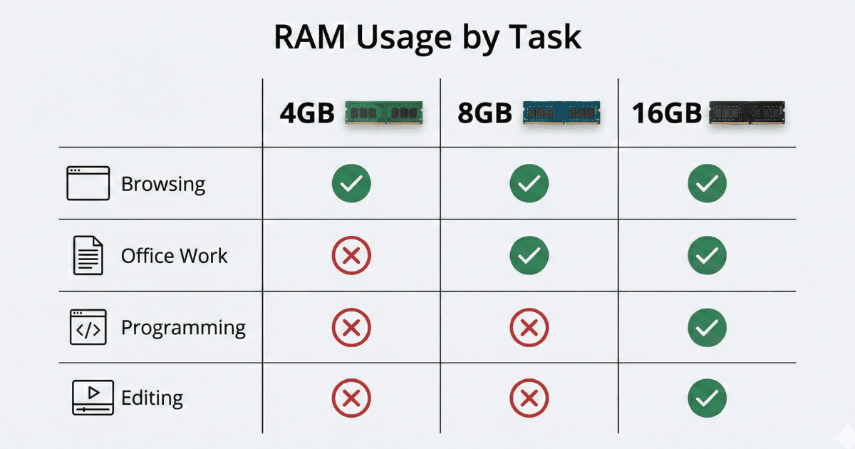 Let’s break down 4GB, 8GB, 16GB, and who needs which.